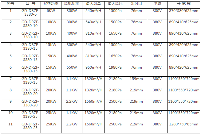 循環(huán)型熱風(fēng)機(jī)選型表